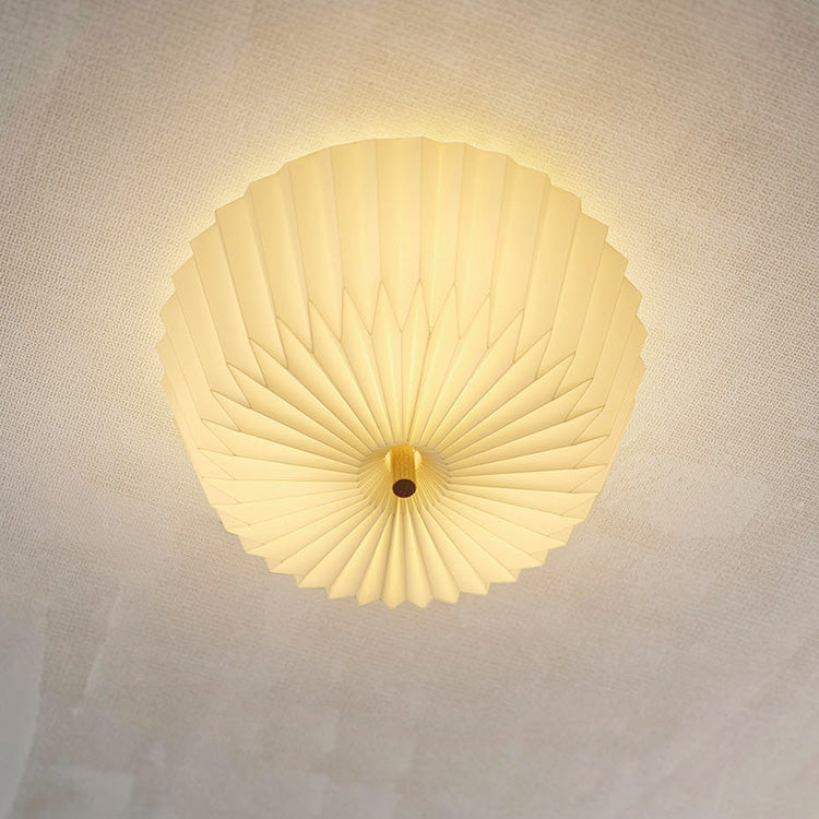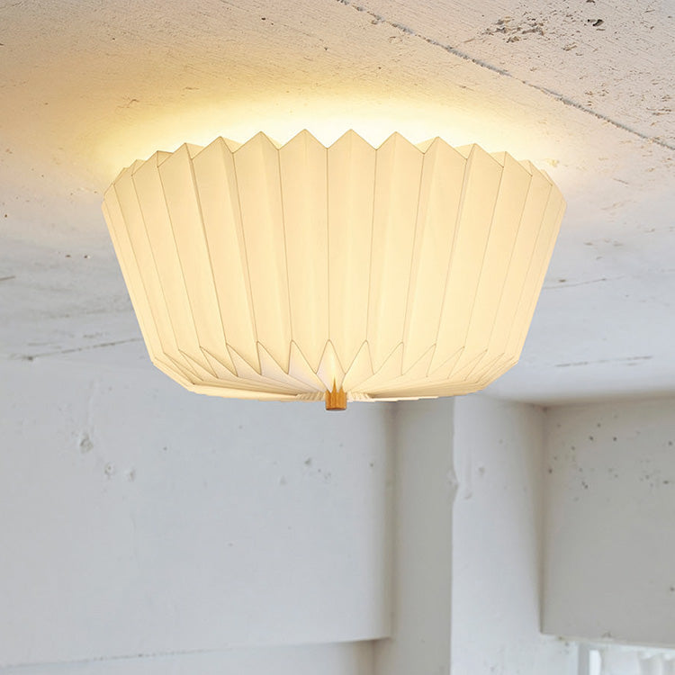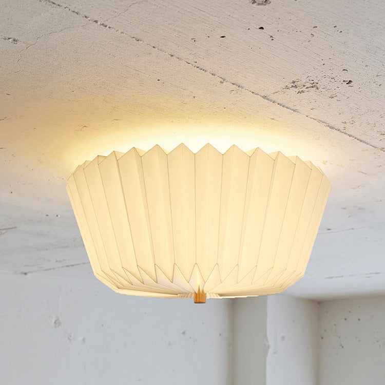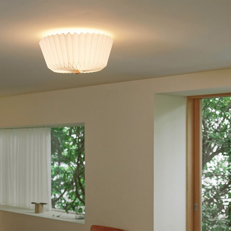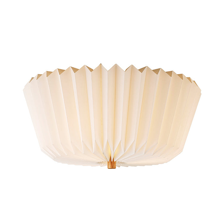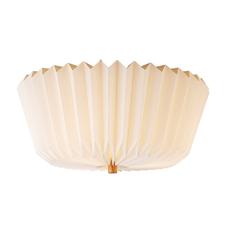 連続する細やかな折りがつくりだす、華やかでありながら繊細な形状と心地よい陰影。障子越しの陽光のようにやわらかな光が広がり、落ち着きのある空間を演出します。さりげないウッドパーツがぬくもりを添え、和風から北欧、ジャパンディまで多様なスタイルになじみます。洗練された上品さだけでなく、明るさの確保やコンパクトな設計にもこだわりました。