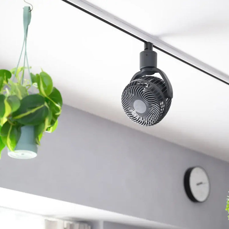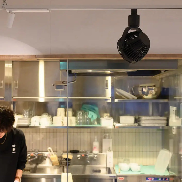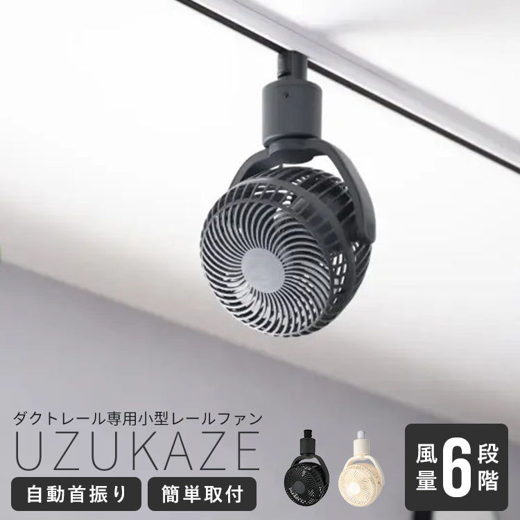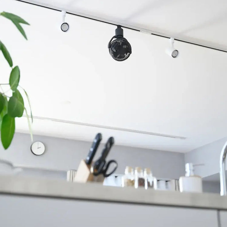 UZUKAZE RAILFANは、狙った場所へピンポイント送風が可能な小型の扇風機型ファンです。熱がこもりやすいキッチンや脱衣所の換気、ハンギンググリーンへの送風など、幅広い用途で活躍します。自動首振り機能を搭載しており、冷暖房の温度ムラを解消するのにもおすすめです。