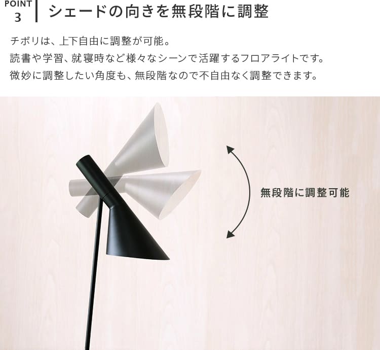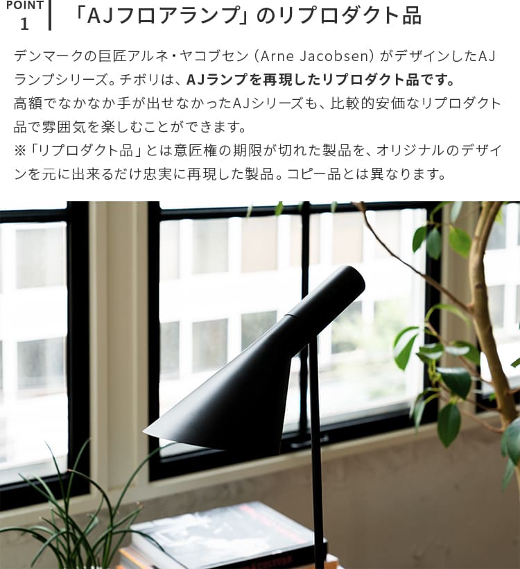 こちらはアルネ・ヤコブセン(Arne Jacobsen)がデザインした「AJフロアランプ」のリプロダクト製品です。