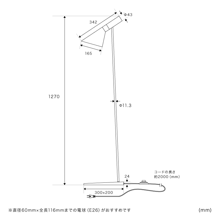 ※推奨電球サイズ:最大径60×全長116(mm)以下 重量80(g)以下