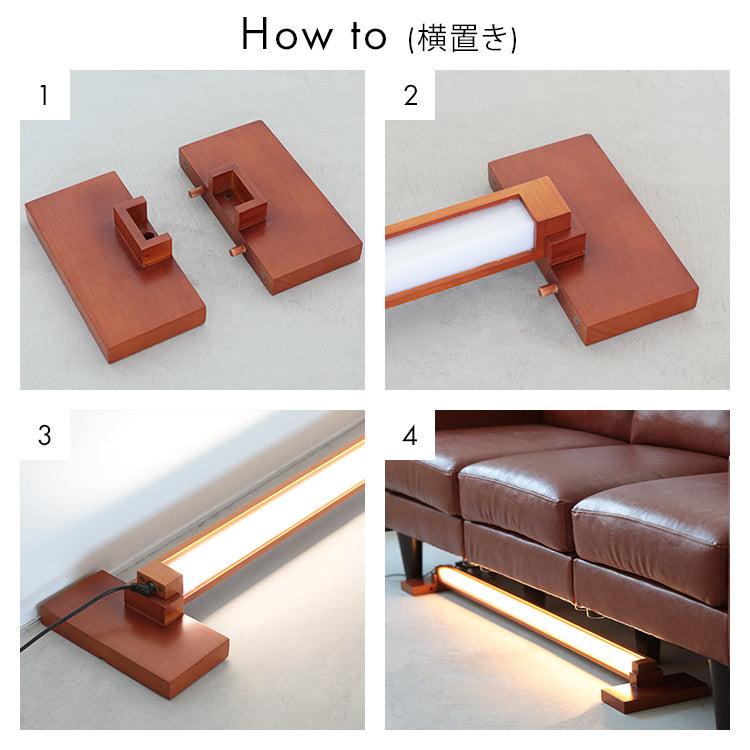 台座の向きを変えるだけで、縦置き・横置きを簡単に切り替えできます。床面をやわらかく照らすことで、空間に陰影と奥行きを生み出します。非日常感や高級感を演出することができるフロアライトです。