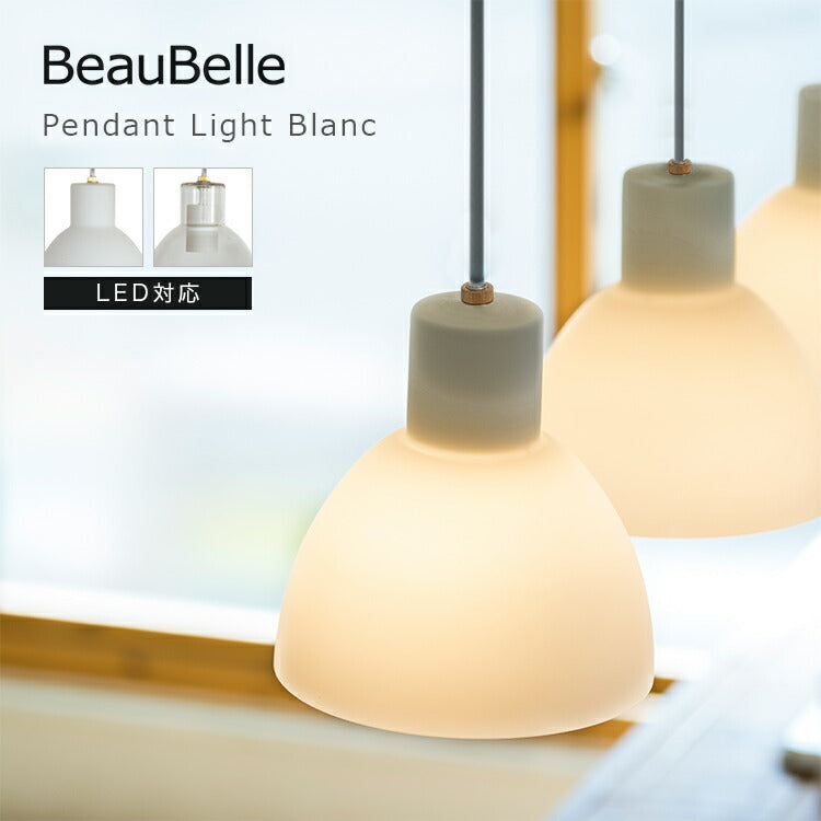 シンプルな乳白色と柔らかな曲線を描いたフォルムが特徴的で、どこか北欧テイストなかわいいペンダントライト「BLANC(ブラン)」。