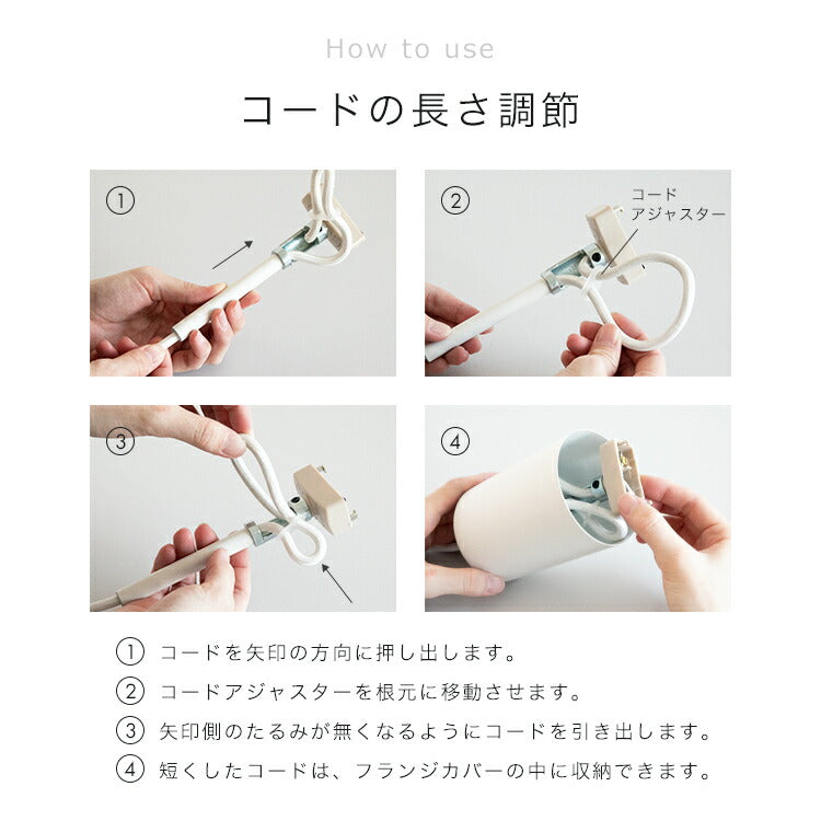 「ブラン」にはコード調節器具が付いているので、届いてから簡単にコードの長さを調節できます。お好みの長さにできるので、「コードが長くて困る」「イメージより短い」なんて心配もありません。