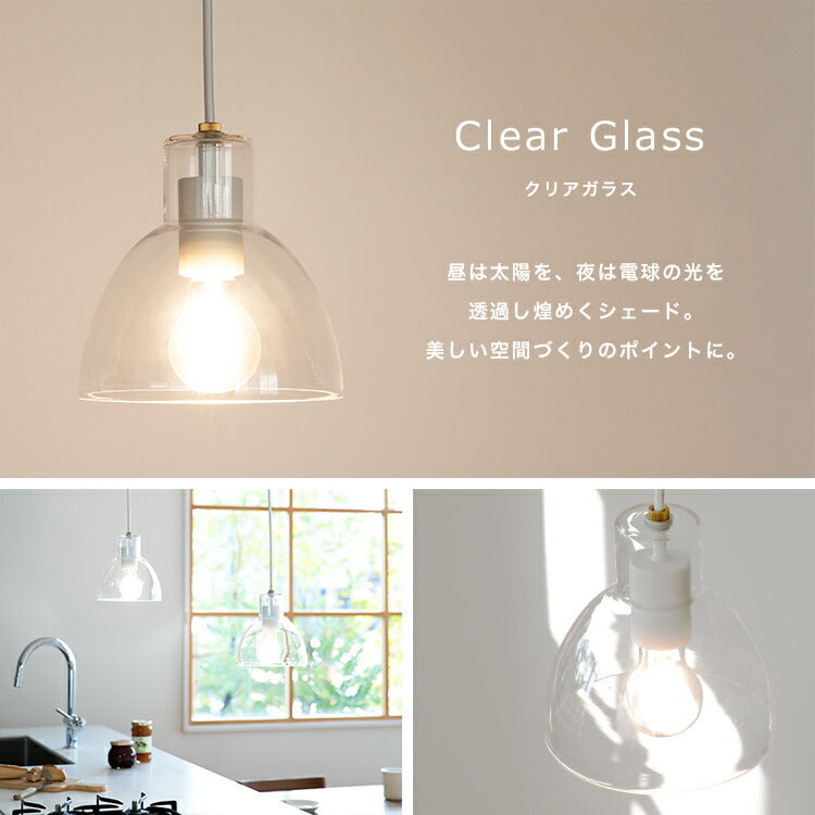 透明感のあるクリアガラス。昼は太陽の光を、夜は電球の光を透き通らせて美しく輝きます。