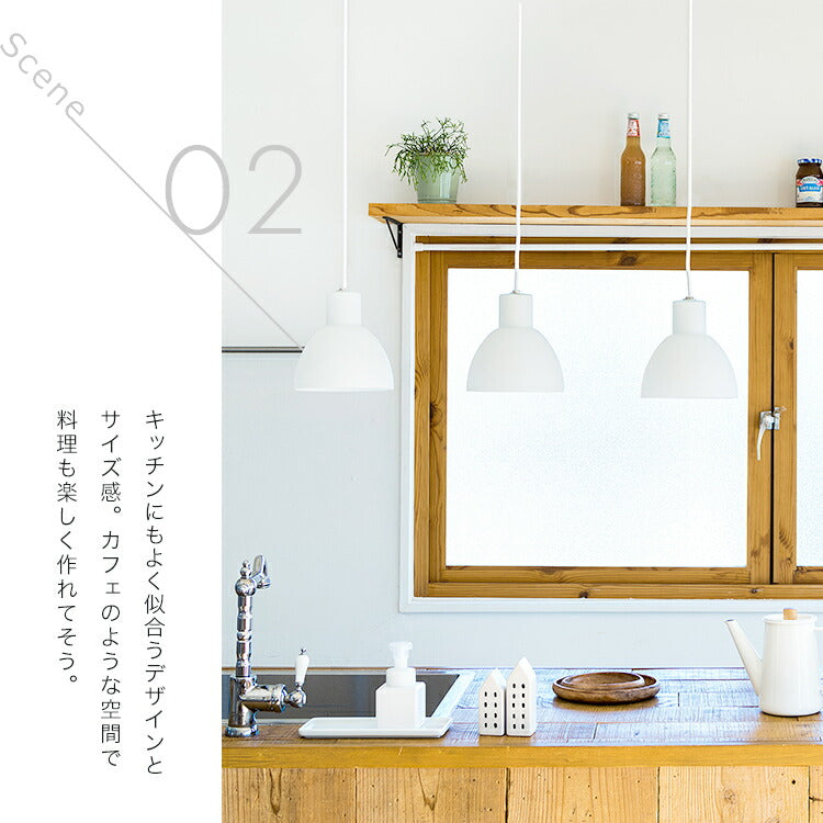 清潔感あるガラスシェードはダイニングテーブルの上やカウンターキッチンにピッタリ。