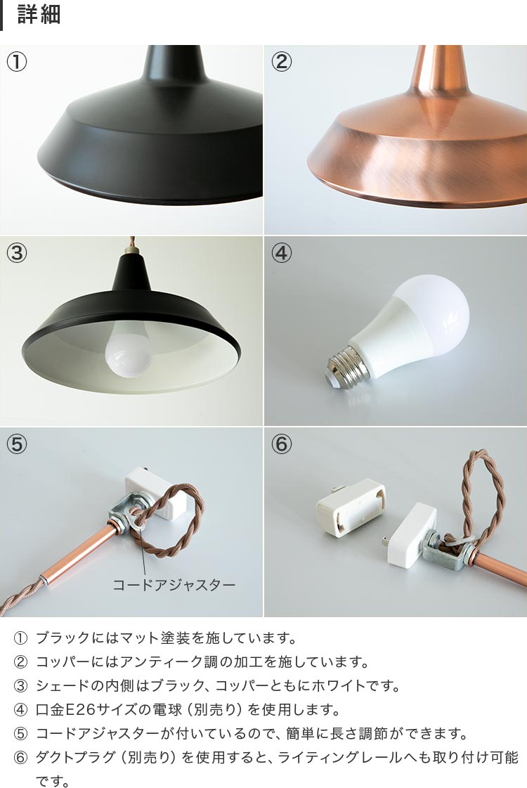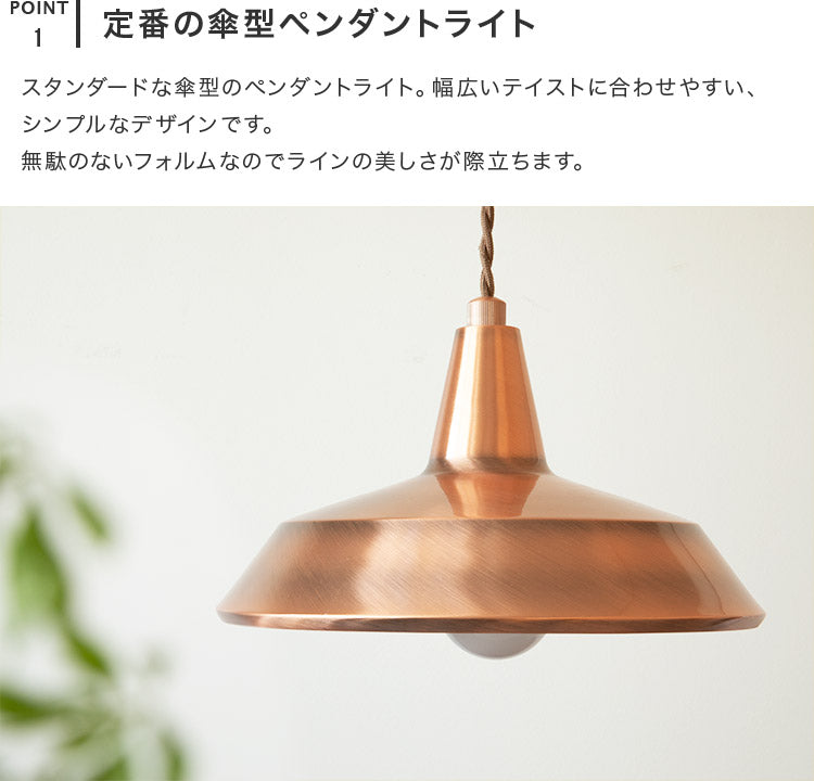 スタンダードな傘型のペンダントライト。幅広いテイストに合わせやすい、シンプルなデザインです。無駄のないフォルムなのでラインの美しさが際立ちます。