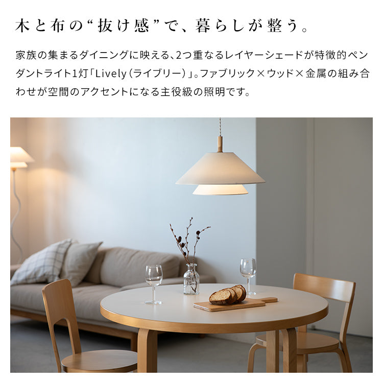 家族の集まるダイニングに映える、2つ重なるレイヤーシェードが特徴的なペンダントライト1灯「Lively(ライブリー)」。