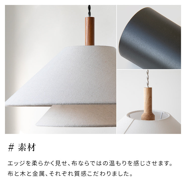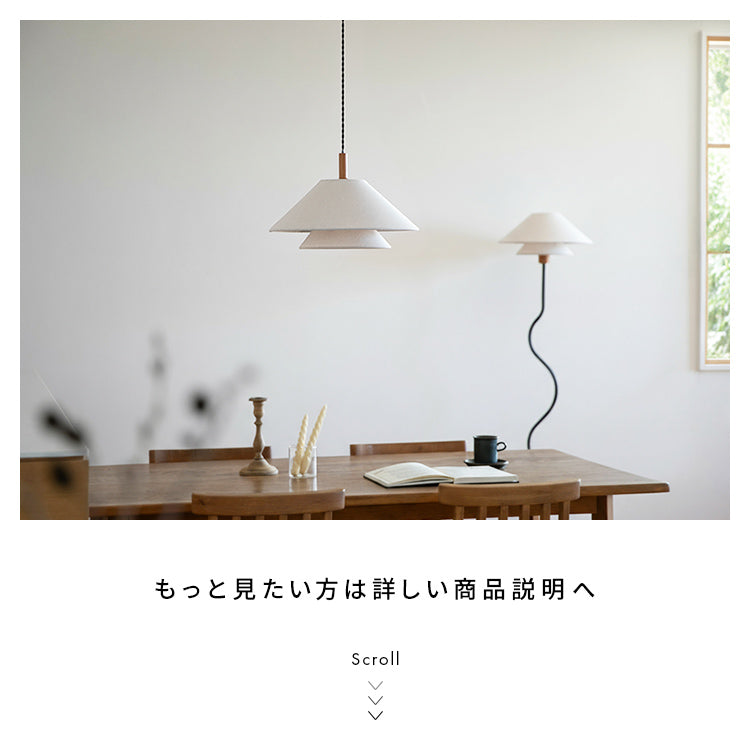 ファブリック×ウッド×金属の組み合わせが空間のアクセントになる主役級の照明です。