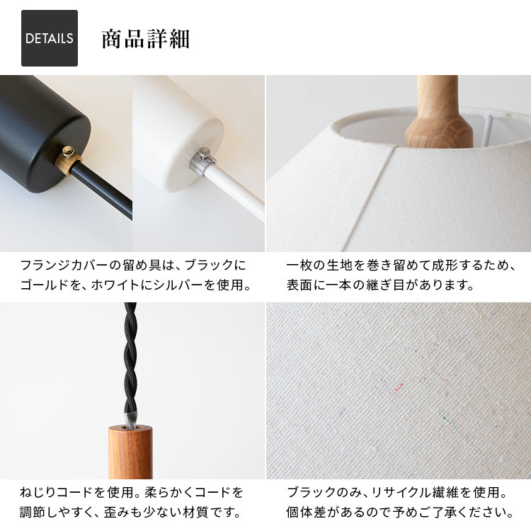 本商品のファブリックシェードはリサイクル繊維を使用しており、その特性上、色味や風合いに個体差が生じる場合があります。