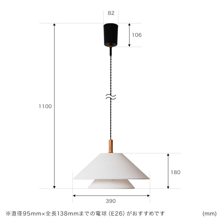推奨電球サイズ:直径95×高さ138mmまでの電球(E26)がおすすめ