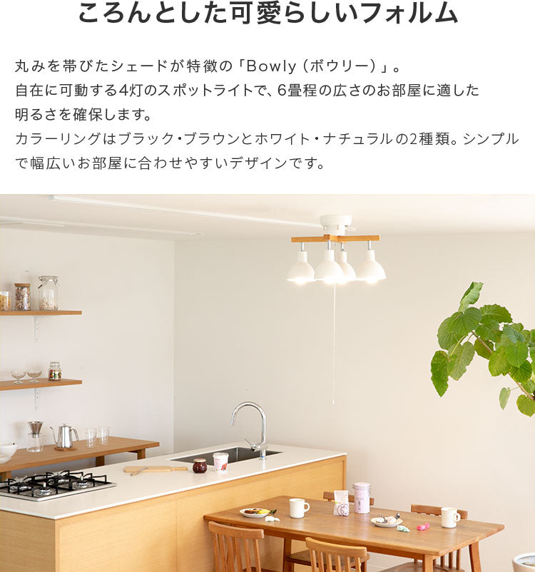 丸みを帯びたシェードが特徴的なシーリングライト「ボウリー」。