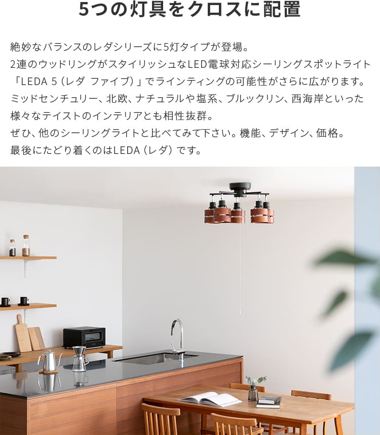 当店人気のレダシリーズより5灯シーリングライトが登場。