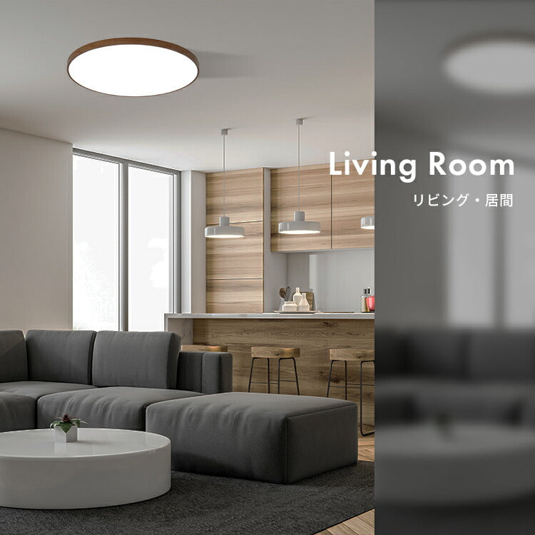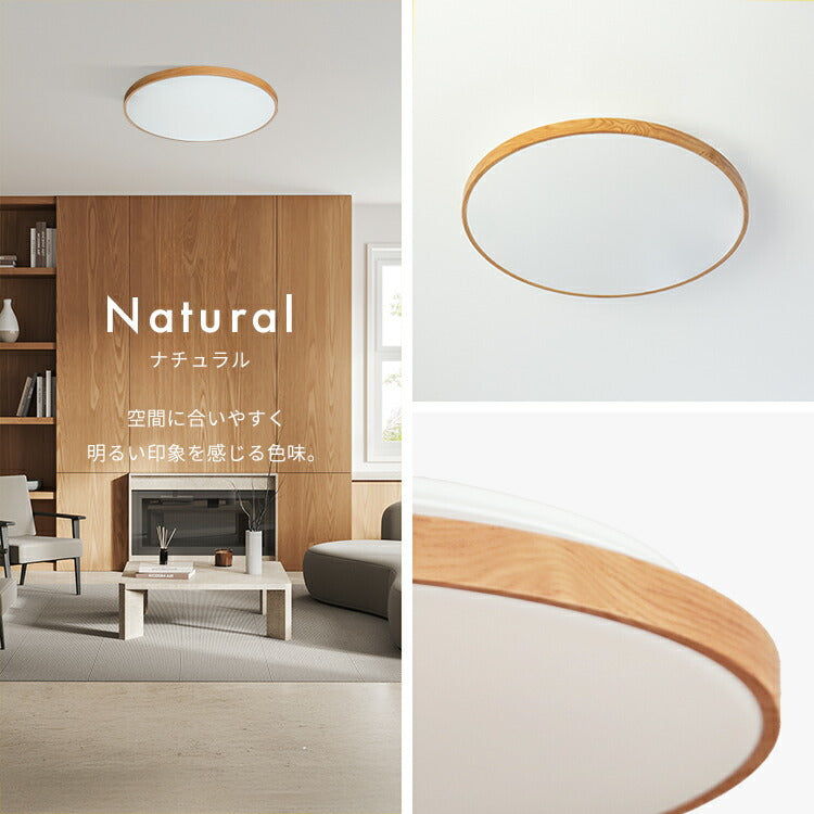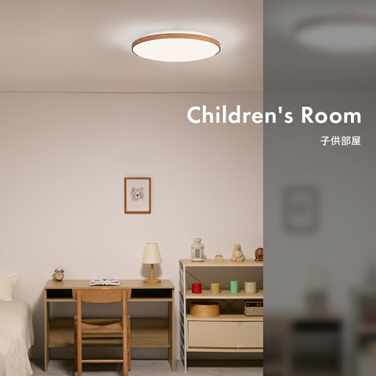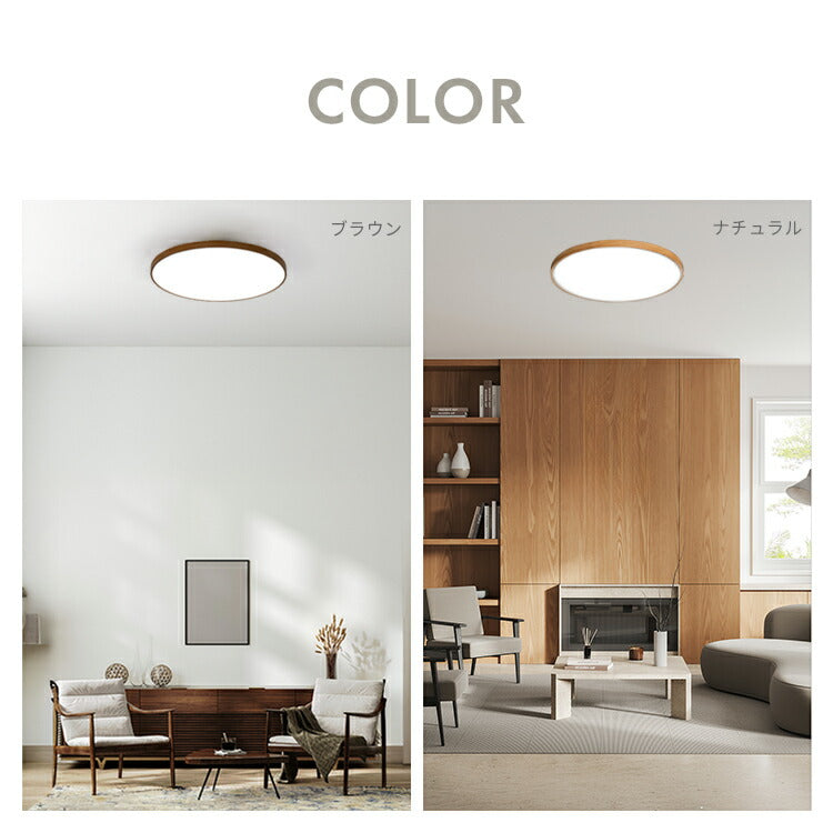 同じ丸型シーリングライトでも、木目のアクセントがあるだけで