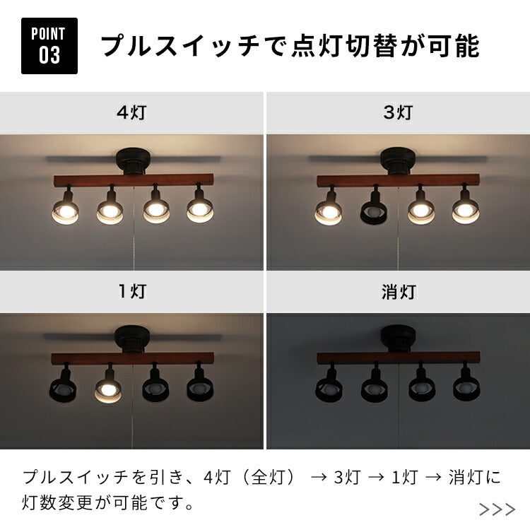 本体付属のプルスイッチで、4灯→3灯→1灯→消灯と点灯パターンの切り替えが可能です。