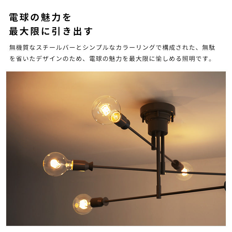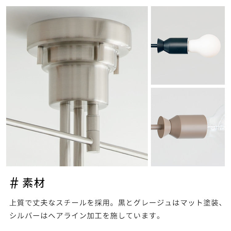 無機質なスチールバーとシンプルなカラーで構成された、無駄を省いたデザインのため、電球の魅力を最大限に引き出すことができます。