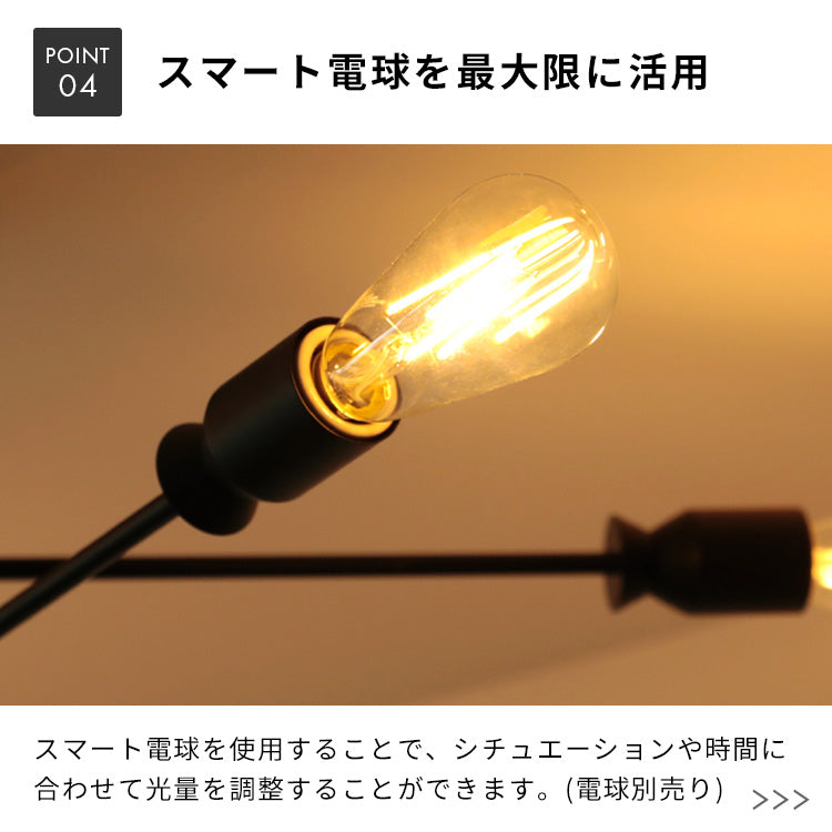 スマート電球を使用することで、シチュエーションや時間に合わせて光量を調整することができます。(電球別売)