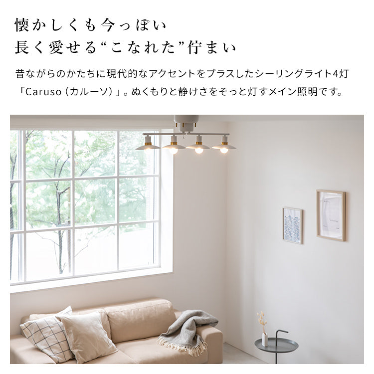 見覚えあるレトロな要素と、モダンなデザインが絶妙なバランスのシーリングライト4灯「Caruso(カルーソ)」。