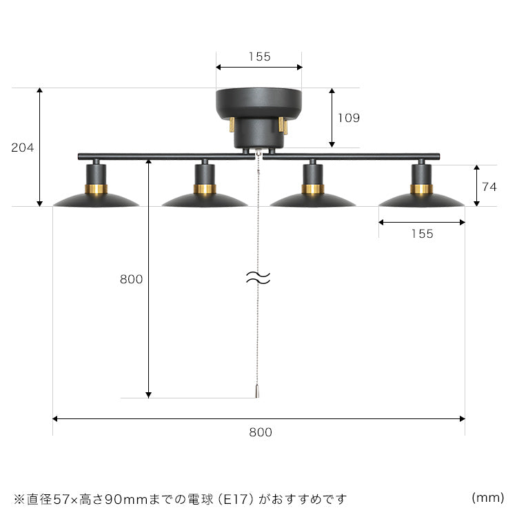 プルスイッチを引っ張り、4灯(全灯)→ 3灯→ 1灯→消灯と灯数を変えて、お好みの明るさに調節できます。