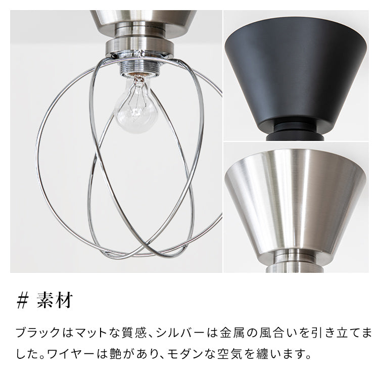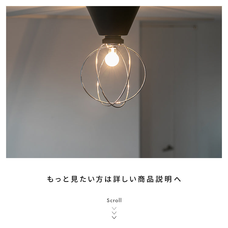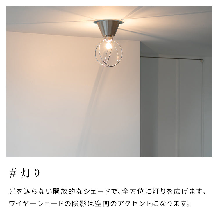 光を遮らない開放的なシェードで、全方位に灯りを広げます。ワイヤーシェードの陰影は空間のアクセントになります。