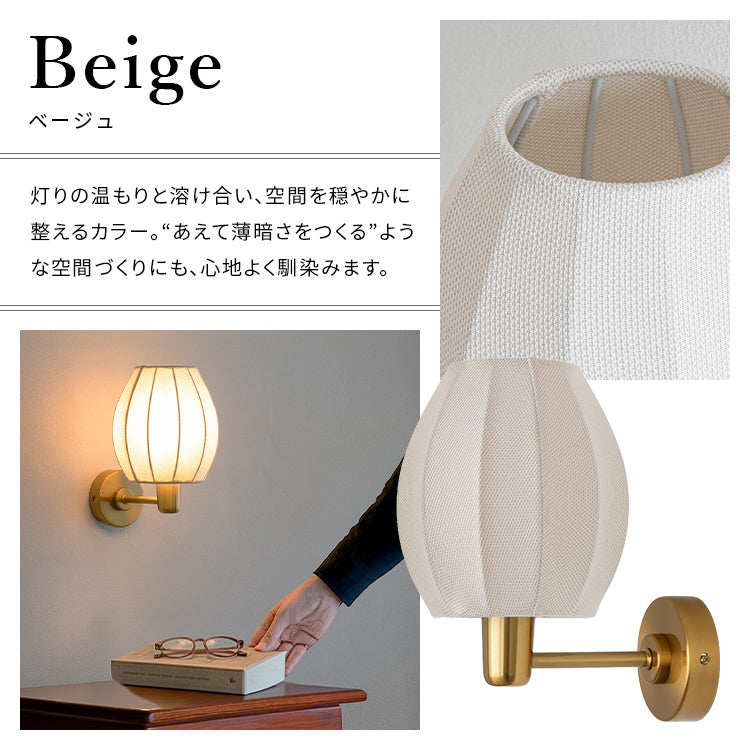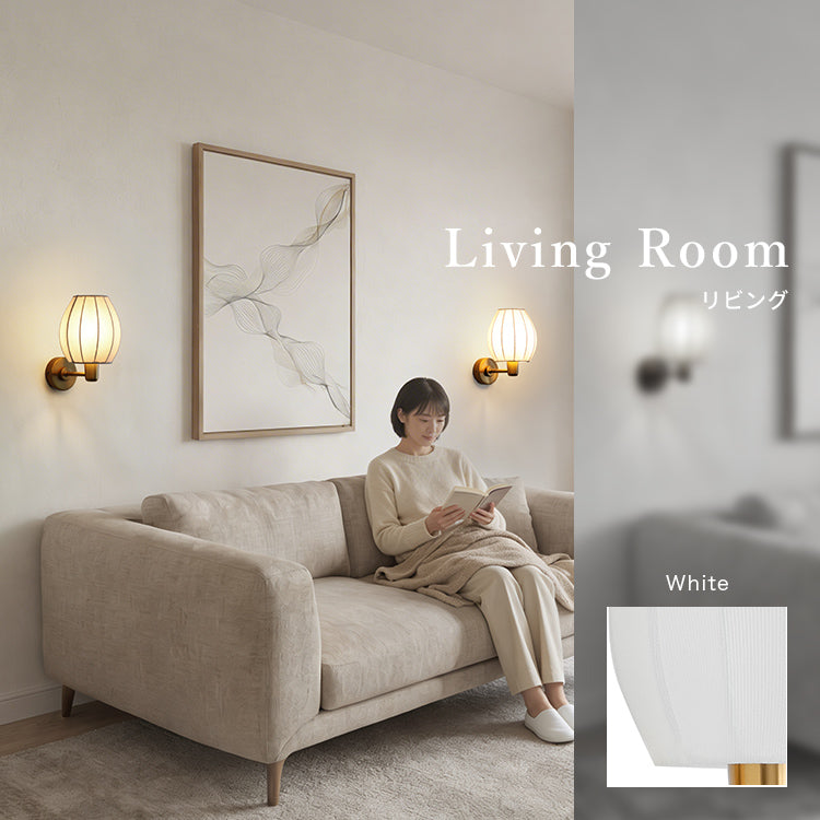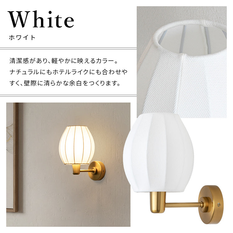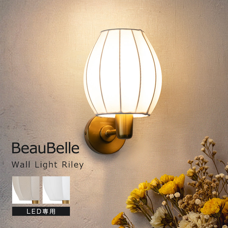つぼみのように丸みを帯びたプリーツシェードと、ゴールドのベース。その可愛さの中に上品さも漂わせ、壁際をそっと整えてくれるウォールライト1灯「Riley(ライリー)」。ファブリック越しに広がる灯りはぽわっとまろやかで、夜の空気を落ち着かせていきます。部屋を明るくするためではなく、気持ちを切り替え、灯すたびに家の中に好きな景色が増えていきます。