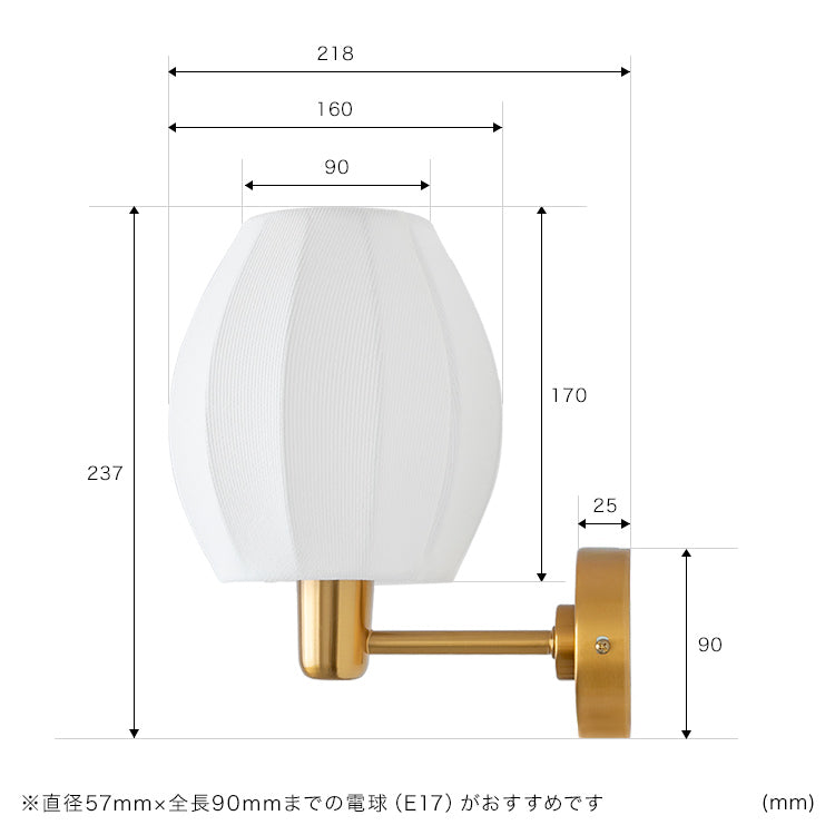 推奨電球サイズ:直径57×高さ90(mm)までのLED電球(E17)がおすすめ