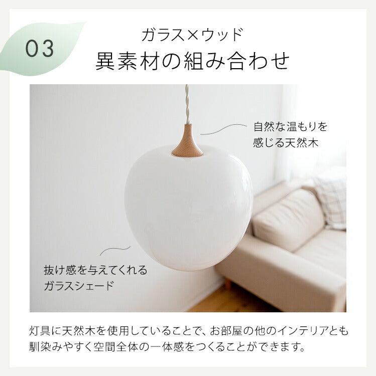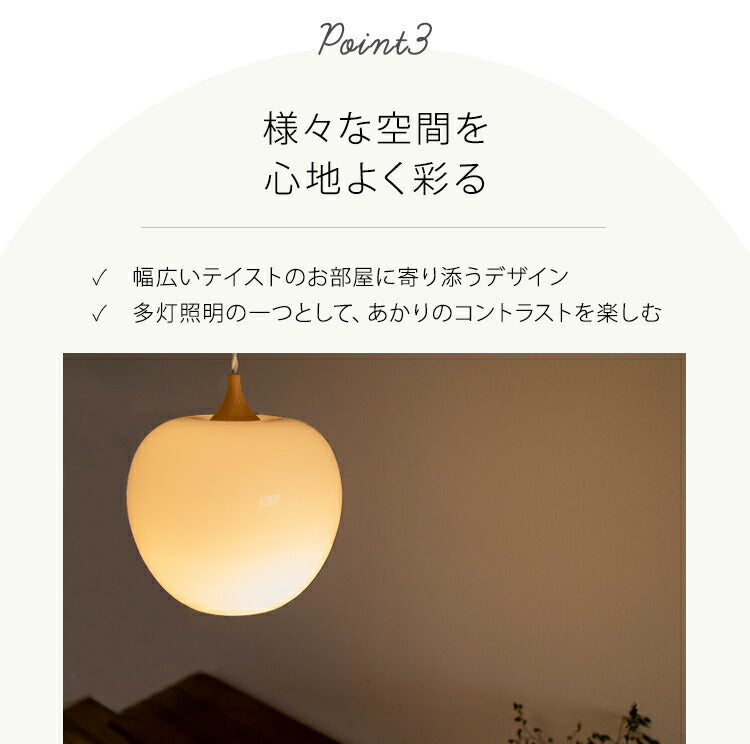 電球を包み込むようにデザインされた乳白色のシェードを伝わって感じる光は、お部屋全体をふわっと優しい空間に変えてくれます。● ■POINT3