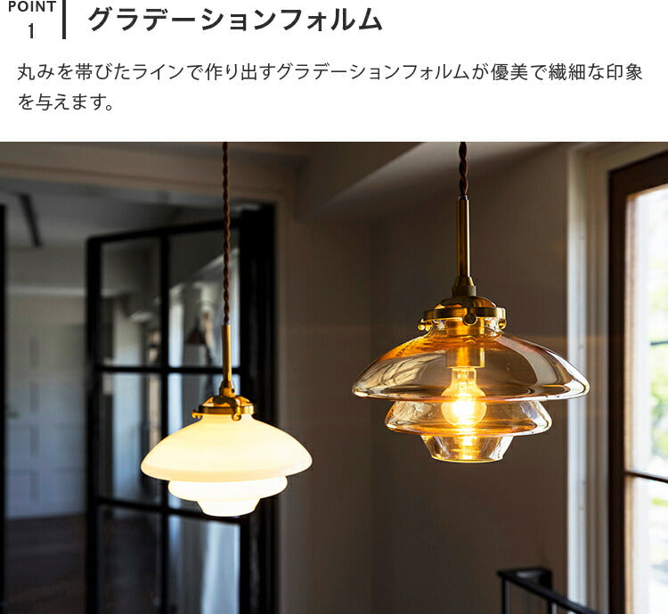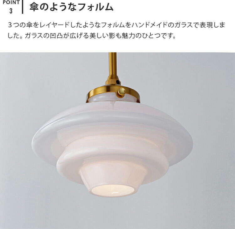 3つの傘をレイヤードしたようなフォルムをハンドメイドのガラスで表現しました。ガラスの凹凸が広げる美しい影も魅力のひとつです。